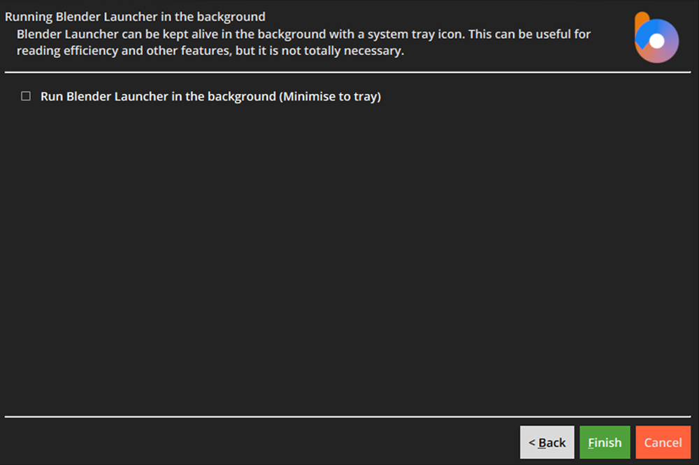 □Run Blender Launcher in the background (Minimise to tray) バックグラウンドでBlender Launcherを実行する(トレイに最小化)