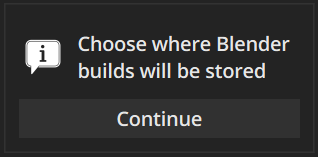 - Blenderのビルド(本体データ)を保存する場所を聞かれるのでContinueで進めます