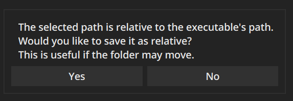 This is useful if the folder may move.選択されたパス(保存場所)は、実行ファイル(.exe)と同じ場所、または相対的な関係にあります。