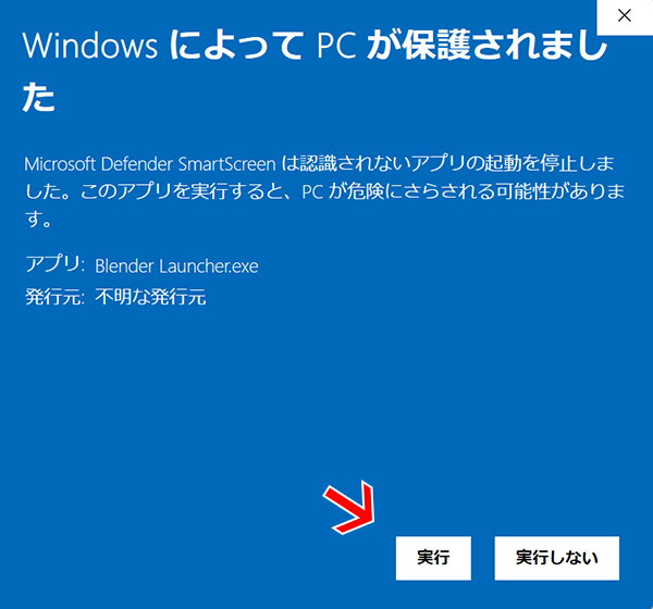 Blender Launcher.exeをダブルクリックすると、場合によっては保護されます。