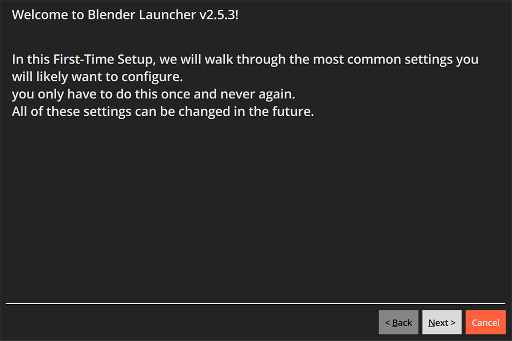 you only have to do this once and never again.All of these settings can be changed in the future.Blender Launcher v2.5.3 へようこそ!