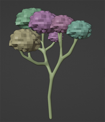 前記事の草作成の応用。Skinモディファイヤ、スムージングにはSubdivideモディファイヤを使用。