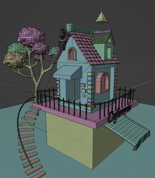 モディファイヤを使って屋根や壁のブロックの作成をしました。