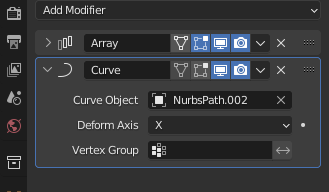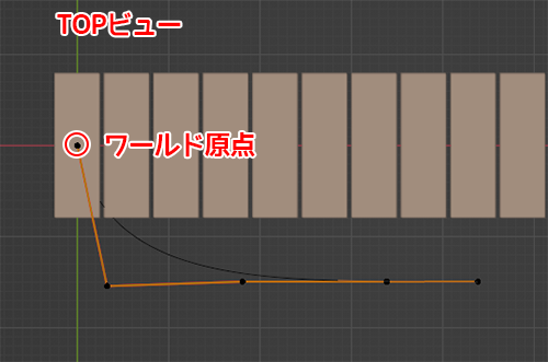 - Curveモディファイヤ:ピックしたカーブを元に変形