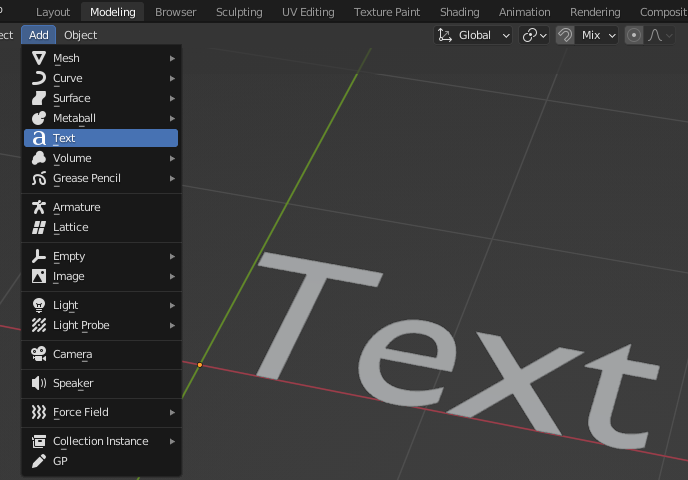 Add(SHIFT+A)>Text