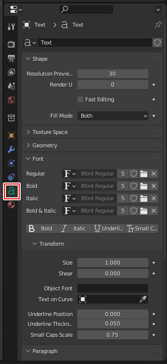 - テキストを選択しObjectモードにします
