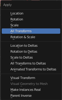 - Pivotをワールド原点に配置したいので Apply(CTRL+A)>All Transforms