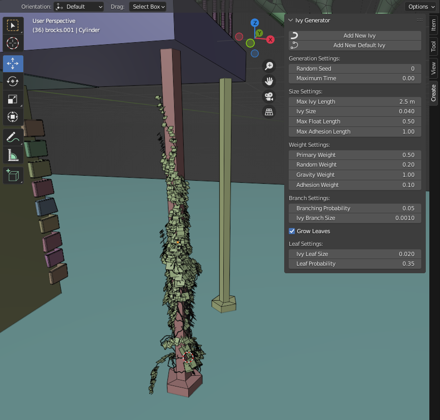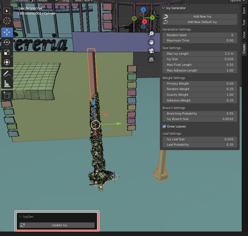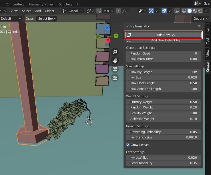 ツタを絡ませたいオブジェクトを選択し、Add New Ivy