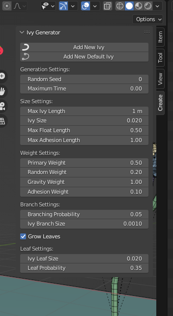 有効にするとUI右側のサイドバーのCreateタブで Ivy Generatorが表示されます。