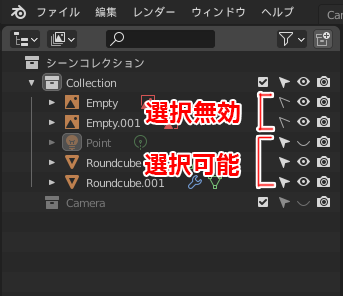 これでアウトライナーに選択可能/無効のメニューが出てきます。