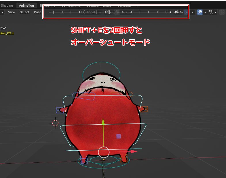 - すると上部にスライダーが表示されるので、そのままドラッグすると中割りポーズが作成されます