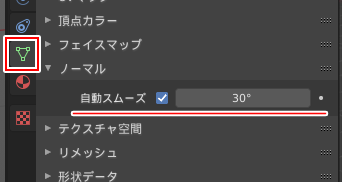 オブジェクトデータプロパティ>ノーマル>自動スムーズ
