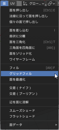 | 辺/面の作成 | 生成したい箇所をエッジで囲んでF。 複数の面を同時に作成したい場合は面>グリッドフィル ![]() |