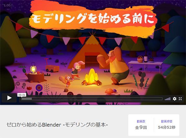 全9回で構成される正にゼロからBlenderを始めたいユーザー向けのチュートリアルです。もれなくBlender初心者なのでやっていきたいと思います。