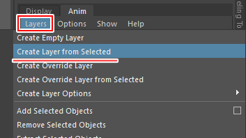 2. 調整したい腰のコントローラーを選択してLayers>Create Layer From Selected
