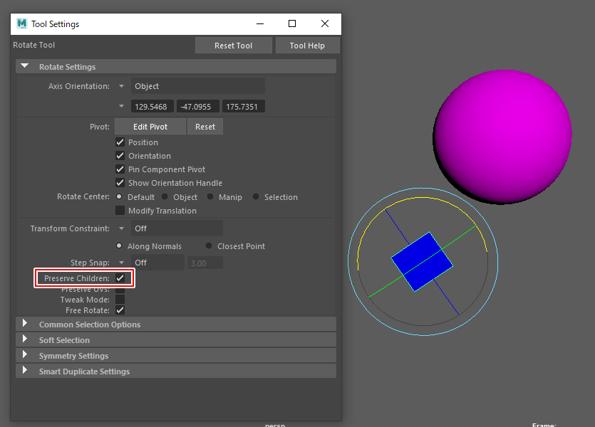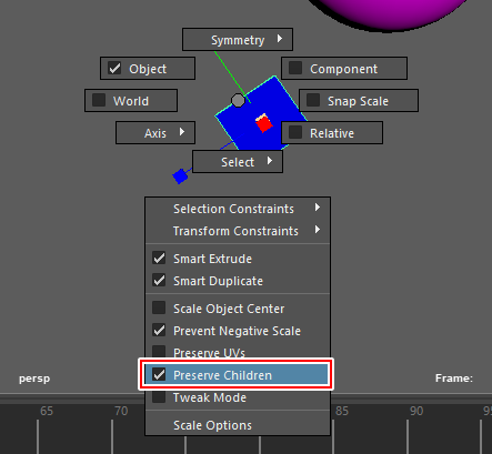 移動・回転・スケールのツールのオプション内、Preserve ChildrenがONの場合、親オブジェクトを移動/回転/スケールしても子オブジェクトは変化しません。