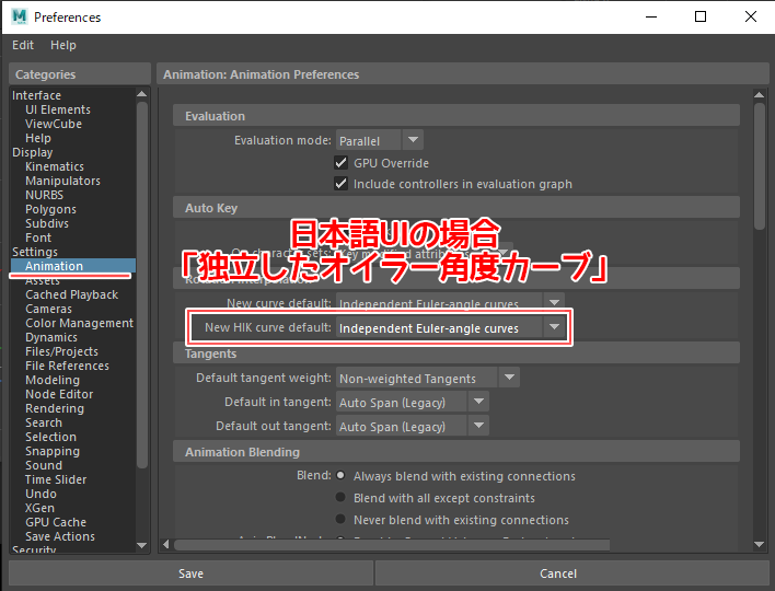初めてHIKを使った際に最初に戸惑ったポイントであり、Mayaのバージョンを上げる度に設定をし忘れて焦る所でもあります。