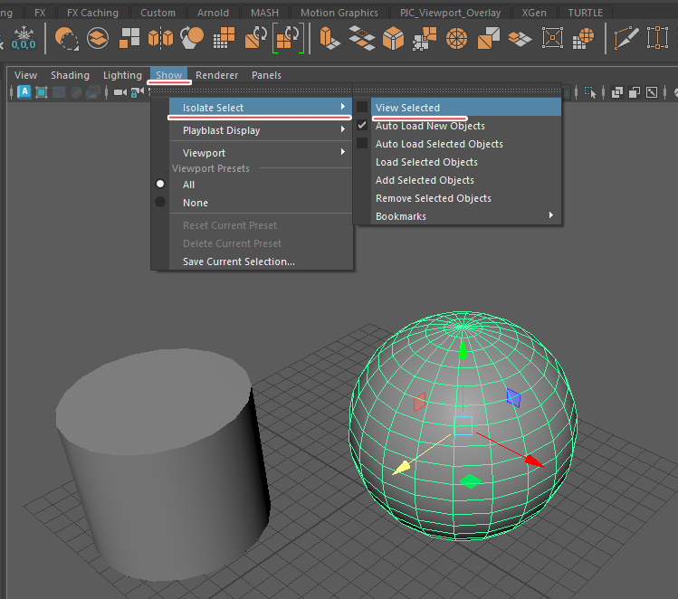 選択オブジェクトのみ表示するモード(Isolate Select)のご紹介です。