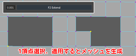 1頂点(又は1エッジ)を選択して実行するとメッシュ生成をしてくれるF2 Extend。名前もさることながら、いまいち使いどころがわかりません。