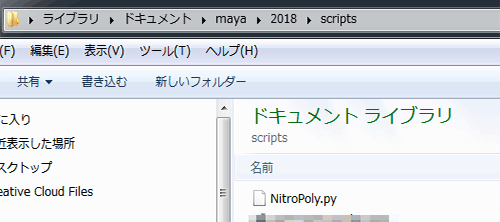 - "NitroPoly.py"をMayaスクリプトフォルダに入れます。