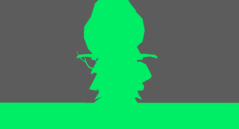 - マテリアルも外れたためオブジェクトが緑に。