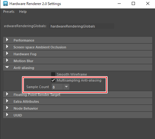 SampleCountを高くすればするほどエッジが滑らかになります。