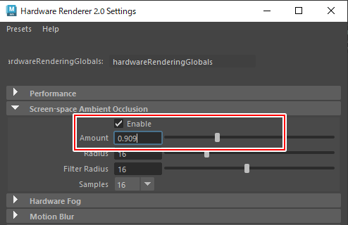 Screen-space Ambient Occlusion>Enableにチェックを入れます。