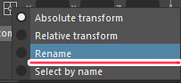 - 左の四角いアイコンをクリックすると表示されるリストの中からRenameを選択します。