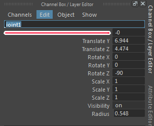 方法1:アトリビュートエディタ/チャンネルボックスで変更