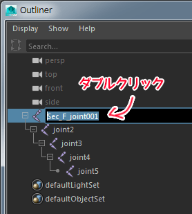 - 名前を変えたいジョイントを選択して、入力BOXに文字列を入力します