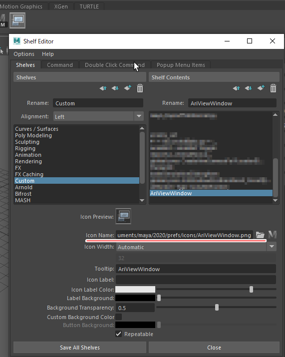 英語:C:\Users\(ユーザー名)\Documents\maya\(Mayaバージョン)\prefs \icons