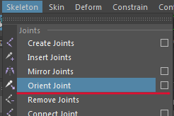 方法2:通常のmoveで調整した後、Skelton>Orient joint でjointOrientを修正する
