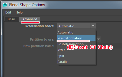 適用前にBlendShape>Advancedタブ>Pre-deformationに変更