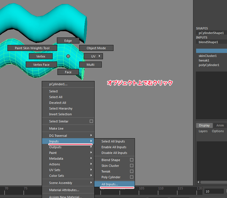 - オブジェクト上で右クリック>Inputs>All Inputs