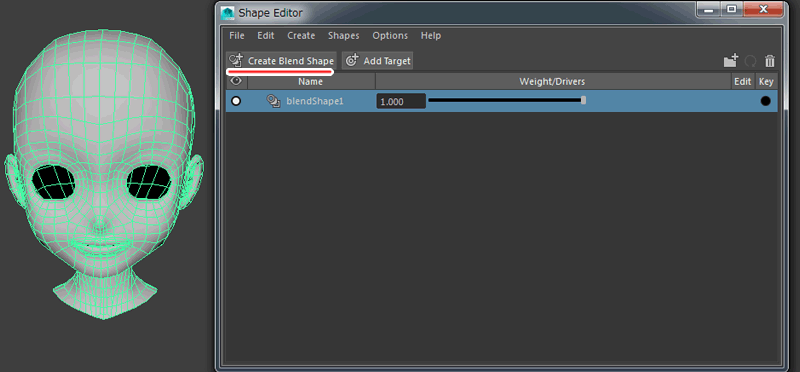 - ブレンドシェイプを作成したいモデルを選択し、Create Blend Shape
