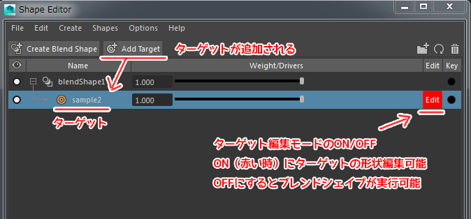 コレまでは左側のターゲットを作成したら、右側にも同じ編集を行うという2度手間かかっていた左右の目パチですが、ShapeEditorを使用して非常に簡単に作成できるようになりました。