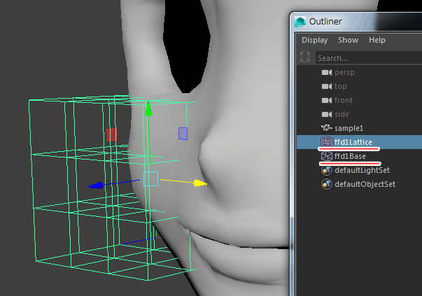 そもそもラティスは、適用した際に出来るffd Baseとffd Latticeの差分で変形する機能です。