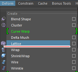 Animationタブ>Deform>Latticeからアクセス出来るデフォーマーの一つです。