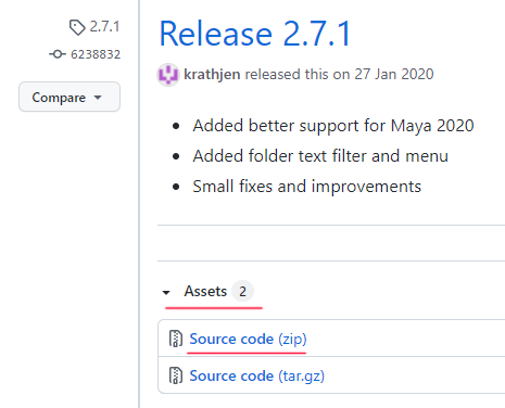 Release Notesから指定されたバージョンのAssets>SourceCode(.zip)をDLします。