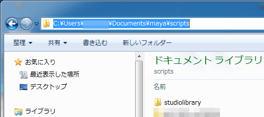 DLしたZIPを解凍した際に出てきたstudiolibraryフォルダを以下の場所に入れます。