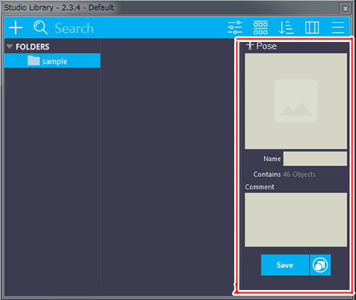 ここではStudioLibratyの機能の一部、ポーズの保存と適用についての機能のご紹介です。