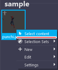 適用先のジョイント又はコントローラーを何処か1つ選択して、登録ポーズのサムネイル上で右クリック>Select Content