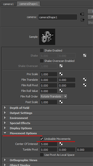 カメラshapeタブ>Movement Option>undoable movementsにチェックを入れます。