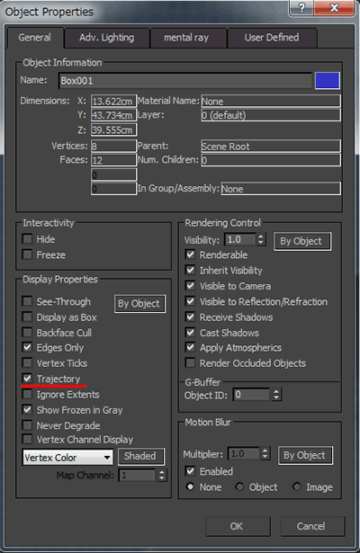 ちなみに3dsMaxだとObject PropatiesのTrajectory↓