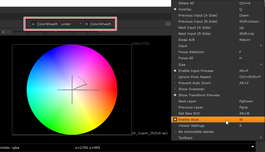 Viewerノードに繋いだ複数のビューをワイプで切り替えて確認できる。