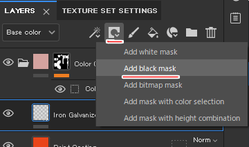 Iron Galvanizedレイヤーを選択した状態で、Add Maskボタンをクリックし、Add black maskを選択します
