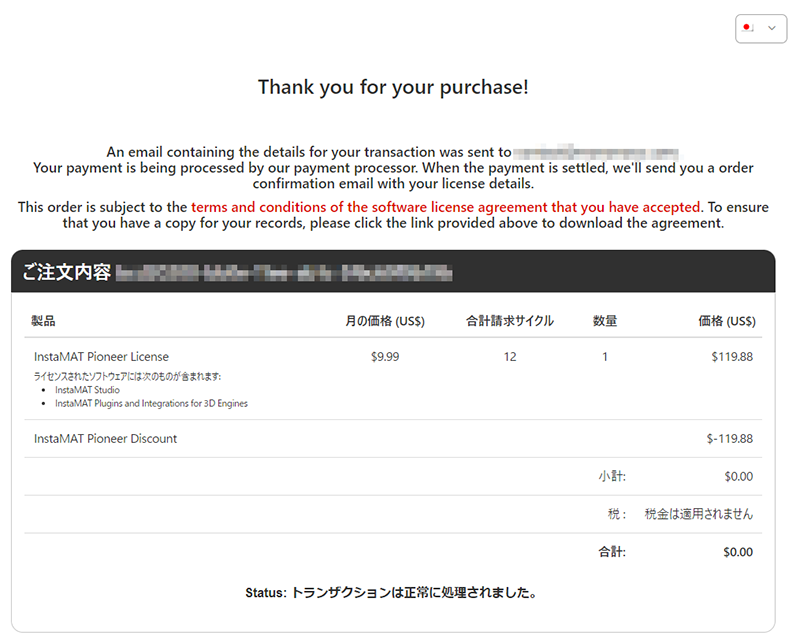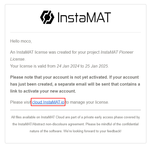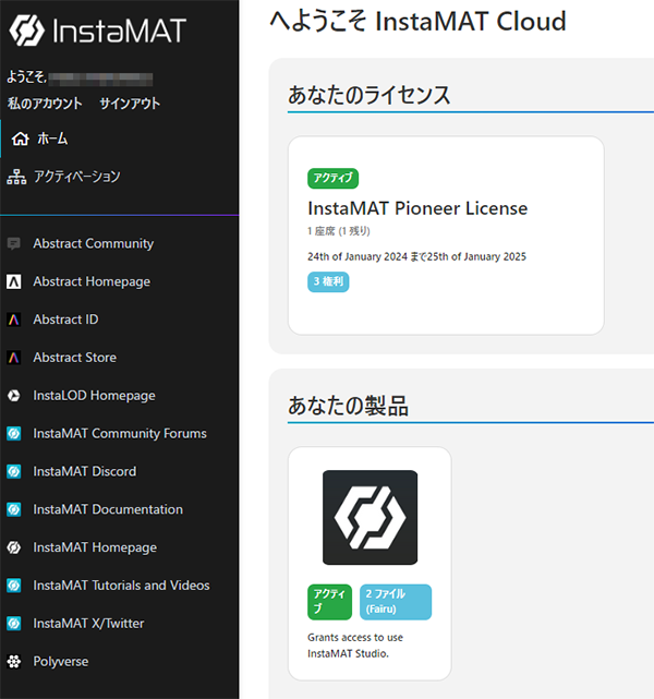 登録したメールに「Your InstaMAT license is now available」というタイトルのメールが届きます。