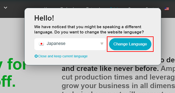 - 移動した先でページの言語をどうするか聞かれるので、Japaneseになっている状態でChange Languageを押します。