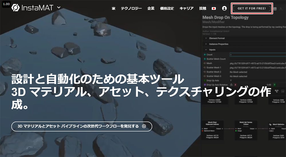 - トップページ右上の GET IT FOR FREE にアクセス。