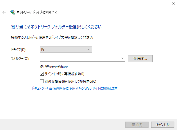 ローカルフォルダにネットワークドライブ割り当ての方法
